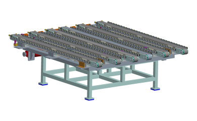 Conveyer belts are used to transport depalletized sheets picked up by robots or manipulators to cleaning machines, oilers or alignment stations. Using variable frequency drive to achieve the entire line speed matching.