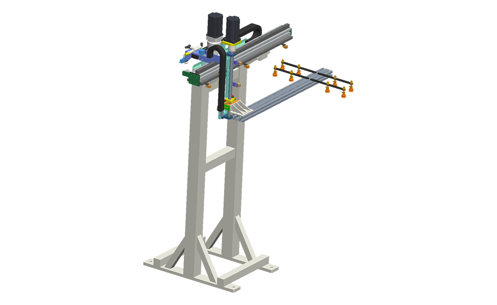 It adopts a compact body and is installed between two punching machines. The full servo system can quickly take out the sheet material. The robot sucks the sheet from the bottom and turns it over. .